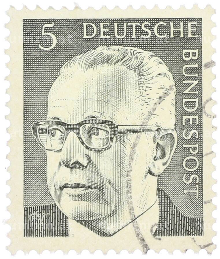 Почтовая марка 5 пфеннигов 1970 года Западная Германия (ФРГ) «Президент Густав Хайнеман» [Артикул: T11-37629]