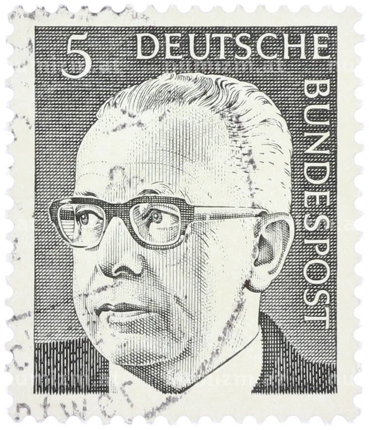 Интернет магазин «Нумизмат» предлагает приобрести Почтовая марка 5 пфеннигов 1970 года Западная Германия (ФРГ) «Президент Густав Хайнеман».
