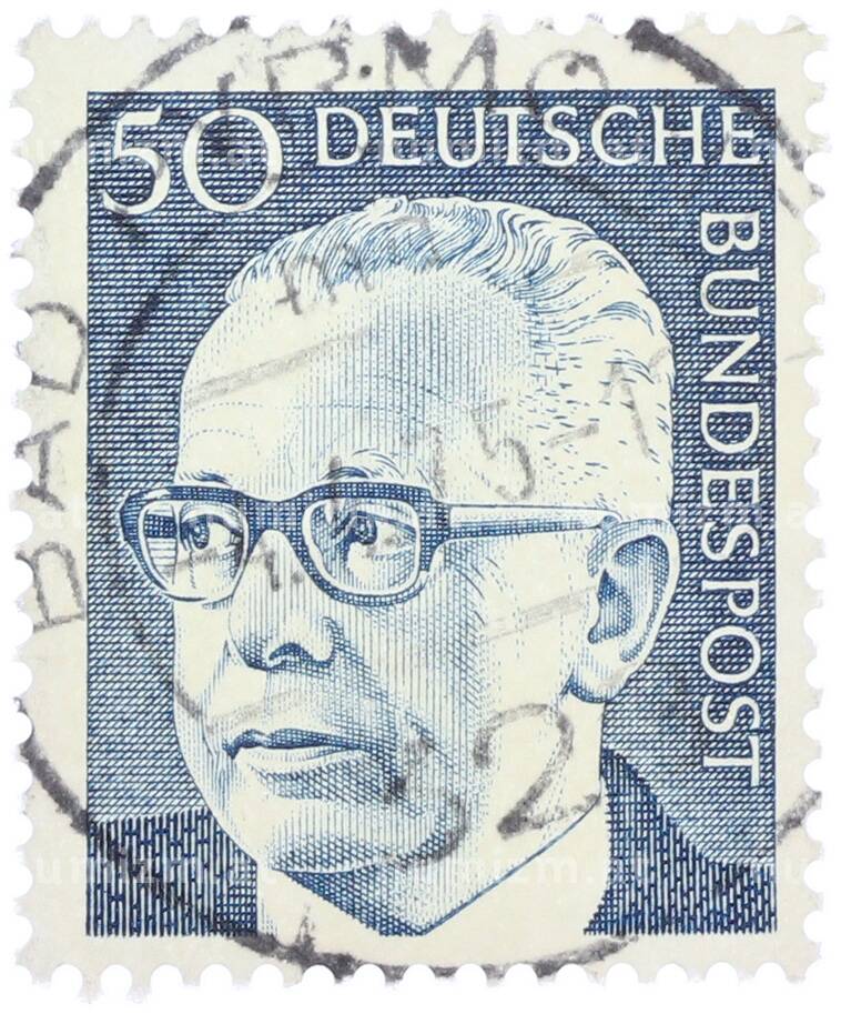Почтовая марка 50 пфеннигов 1971 года Западная Германия (ФРГ) «Президент Густав Хайнеман» (Артикул: T11-37636): подробные характеристики, качественные фотографии в высоком разрешении, низкая цена.
