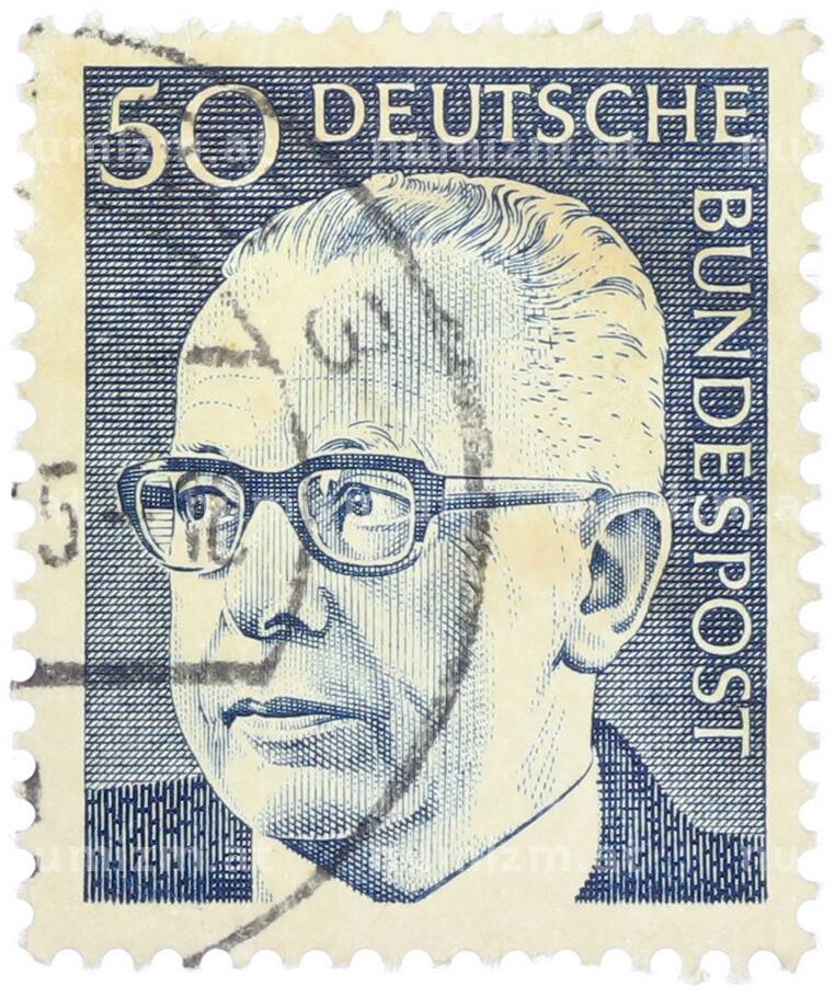 Интернет магазин «Нумизмат» предлагает приобрести Почтовая марка 50 пфеннигов 1971 года Западная Германия (ФРГ) «Президент Густав Хайнеман».