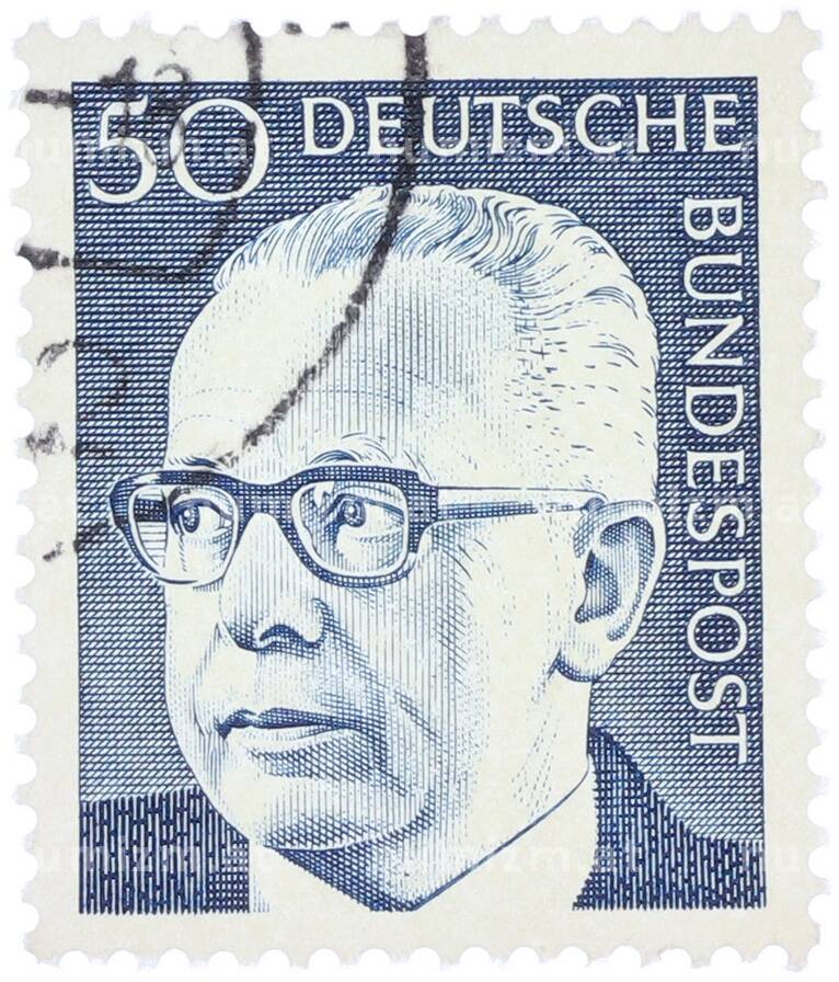 Почтовая марка 50 пфеннигов 1971 года Западная Германия (ФРГ) «Президент Густав Хайнеман» (Артикул: T11-37653): подробные характеристики, качественные фотографии в высоком разрешении, низкая цена.