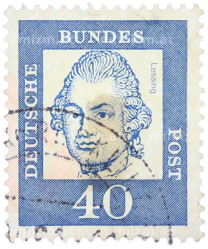 Почтовая марка 40 пфеннигов 1961 года Западная Германия (ФРГ) «Выдающиеся немцы — Готхольд Эфраим Лессинг» [Артикул: T11-37725]