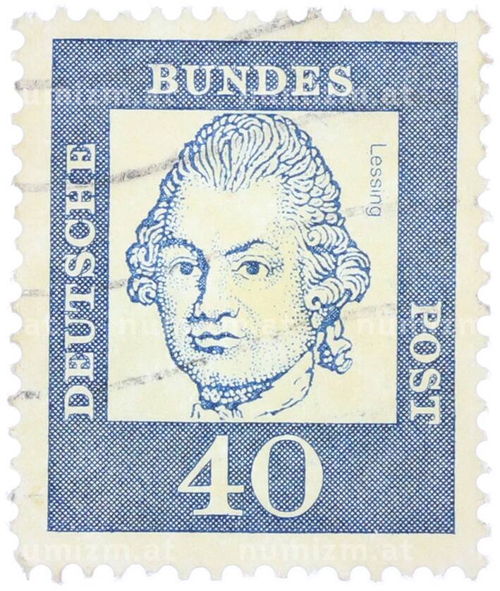 Интернет магазин «Нумизмат» предлагает приобрести Почтовая марка 40 пфеннигов 1961 года Западная Германия (ФРГ) «Выдающиеся немцы — Готхольд Эфраим Лессинг».