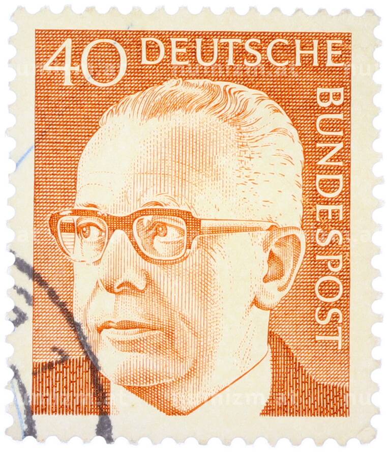 Почтовая марка 40 пфеннигов 1971 года Западная Германия (ФРГ) «Президент Густав Хайнеман» [Артикул: T11-37761]