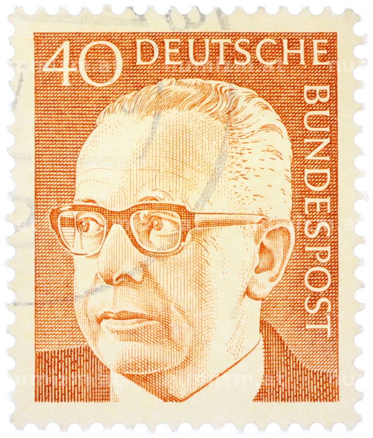 Интернет магазин «Нумизмат» предлагает приобрести Почтовая марка 40 пфеннигов 1971 года Западная Германия (ФРГ) «Президент Густав Хайнеман».