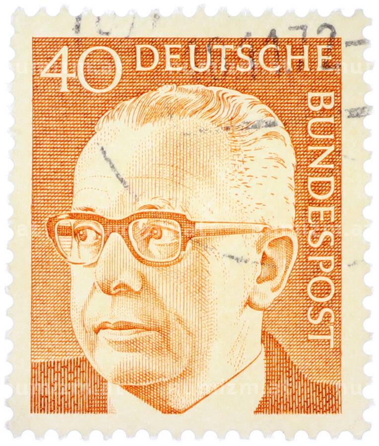 Почтовая марка 40 пфеннигов 1971 года Западная Германия (ФРГ) «Президент Густав Хайнеман» (Артикул: T11-37777): подробные характеристики, качественные фотографии в высоком разрешении, низкая цена.