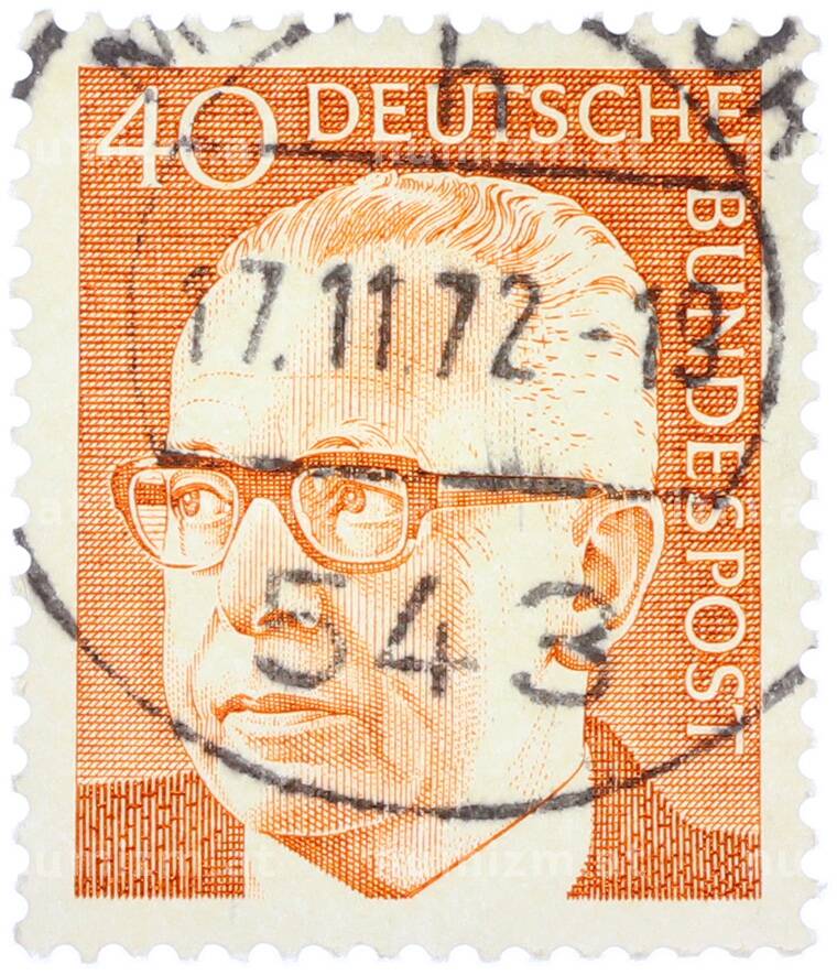 Почтовая марка 40 пфеннигов 1971 года Западная Германия (ФРГ) «Президент Густав Хайнеман» (Артикул: T11-37785): подробные характеристики, качественные фотографии в высоком разрешении, низкая цена.