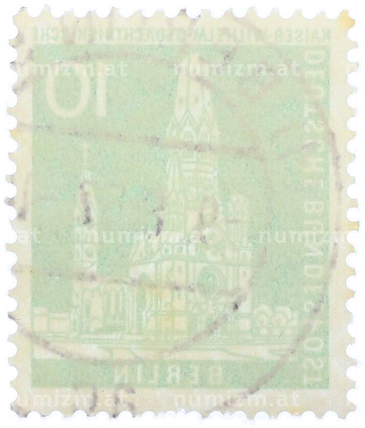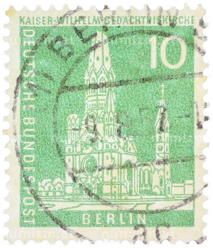 Купить Почтовая марка 10 пфеннигов 1956 года Западная Германия (ФРГ) «Руины мемориальной церкви Кайзера Вильгельма» (Западный Берлин) по привлекательной цене можно в нашем интернет-магазине — Вам достаточно оформить заказ на сайте. Все монеты, представленные в каталоге, находятся в наличии на нашем складе.