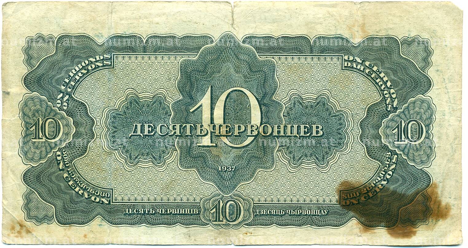 Банкнота 10 червонцев 1937 года (Артикул: T11-37809): подробные характеристики, качественные фотографии в высоком разрешении, низкая цена.