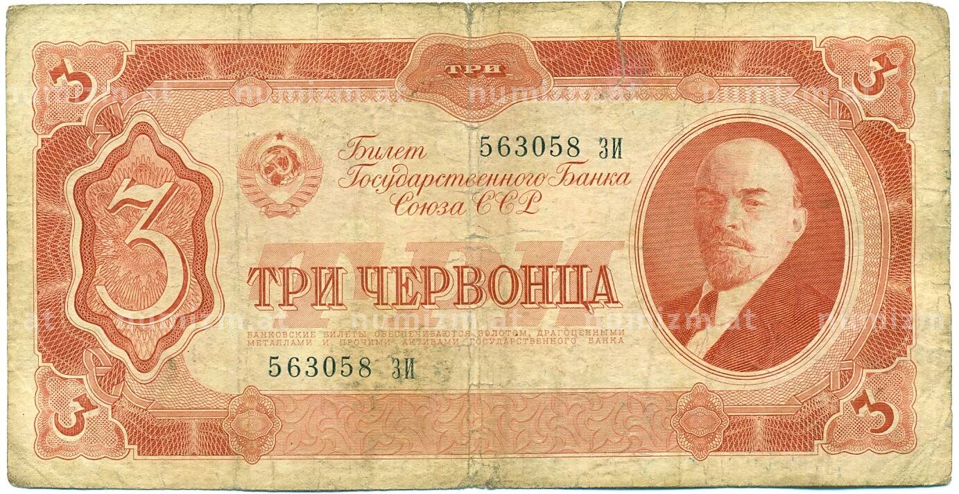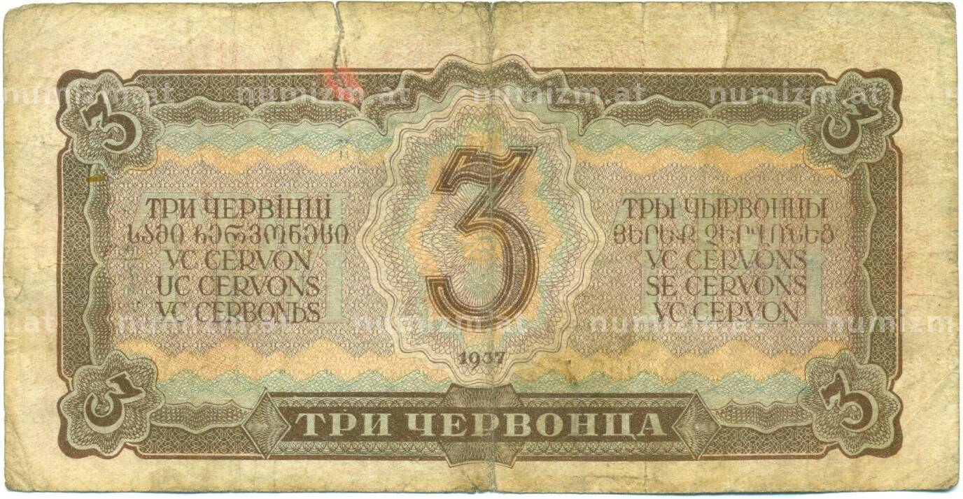 Банкнота 3 червонца 1937 года (Артикул: T11-37817): подробные характеристики, качественные фотографии в высоком разрешении, низкая цена.
