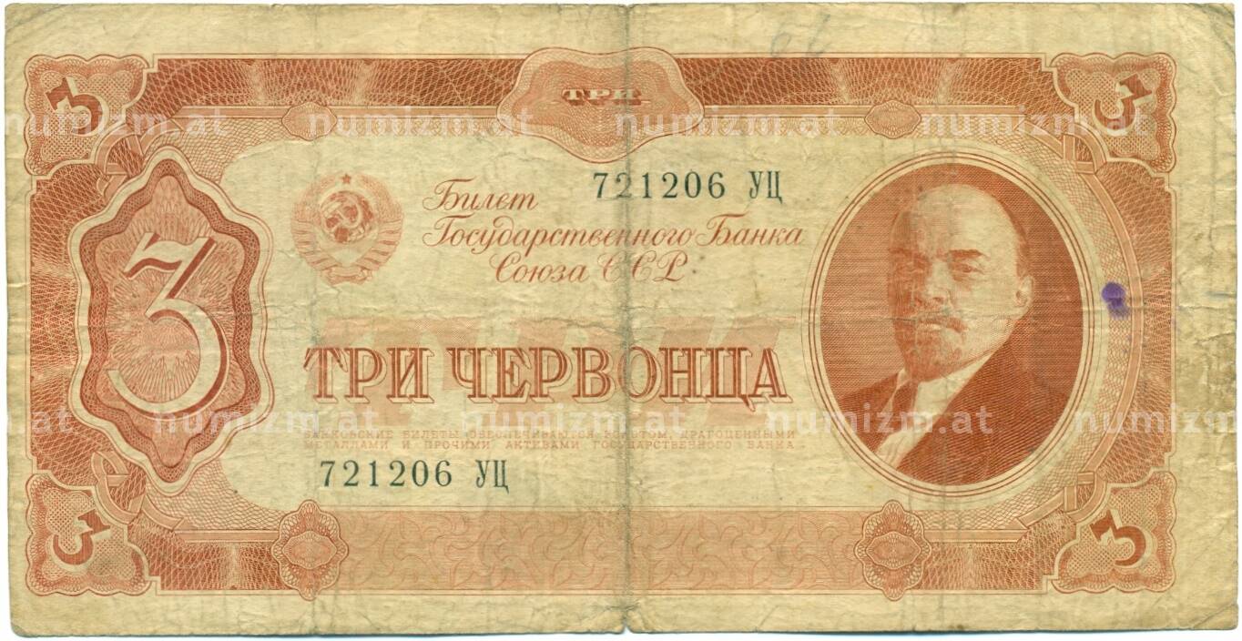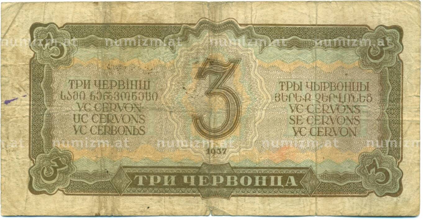 • Банкнота 3 червонца 1937 года (Артикул: T11-37825) — Фото №1 Банкнота 3 червонца 1937 года (Артикул: T11-37825) — Фото №2