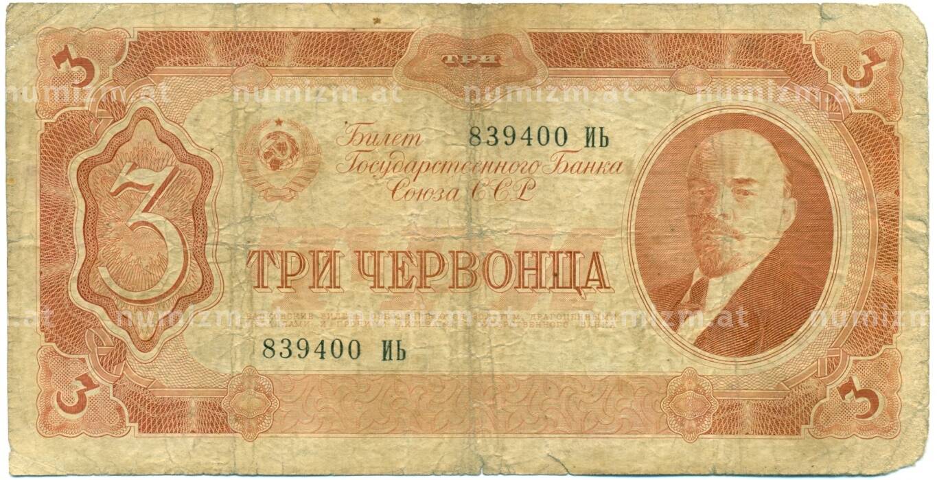 Банкнота 3 червонца 1937 года (Артикул: T11-37827): подробные характеристики, качественные фотографии в высоком разрешении, низкая цена.