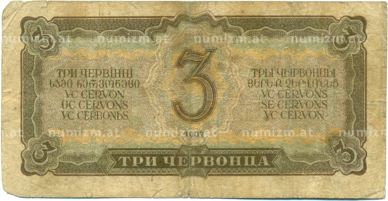 • Банкнота 3 червонца 1937 года (Артикул: T11-37827) — Фото №1 Банкнота 3 червонца 1937 года (Артикул: T11-37827) — Фото №2