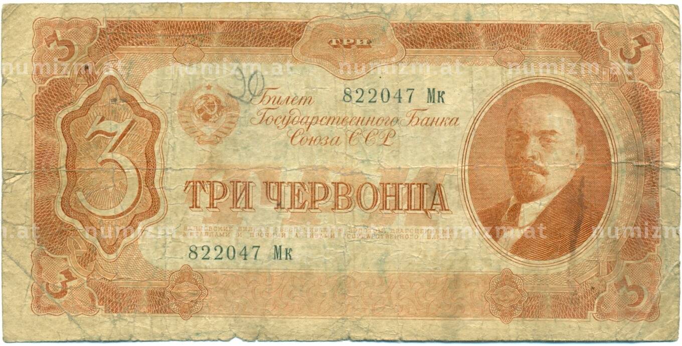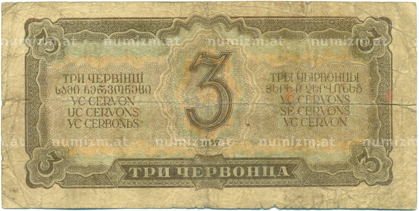 • Банкнота 3 червонца 1937 года (Артикул: T11-37828) — Фото №1 Банкнота 3 червонца 1937 года (Артикул: T11-37828) — Фото №2
