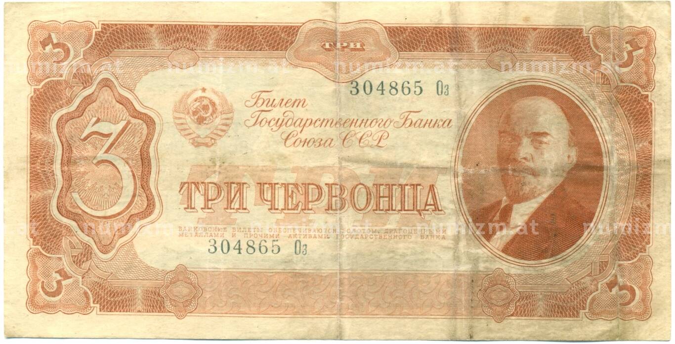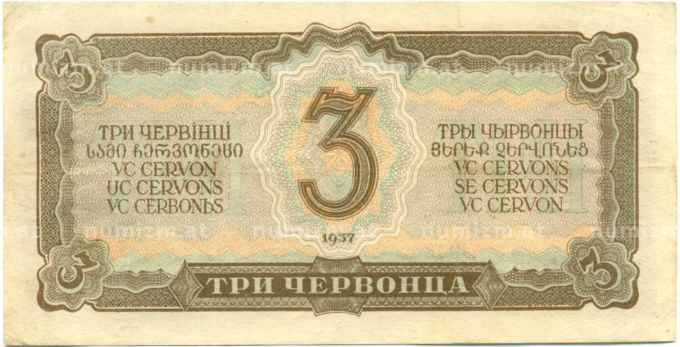 • Банкнота 3 червонца 1937 года (Артикул: T11-37829) — Фото №1 Банкнота 3 червонца 1937 года (Артикул: T11-37829) — Фото №2