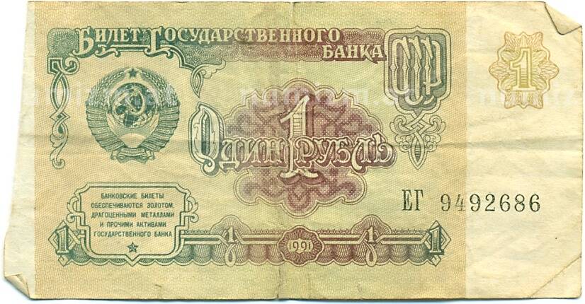 Банкнота 1 рубль 1991 года (Артикул: T11-37843): подробные характеристики, качественные фотографии в высоком разрешении, низкая цена.