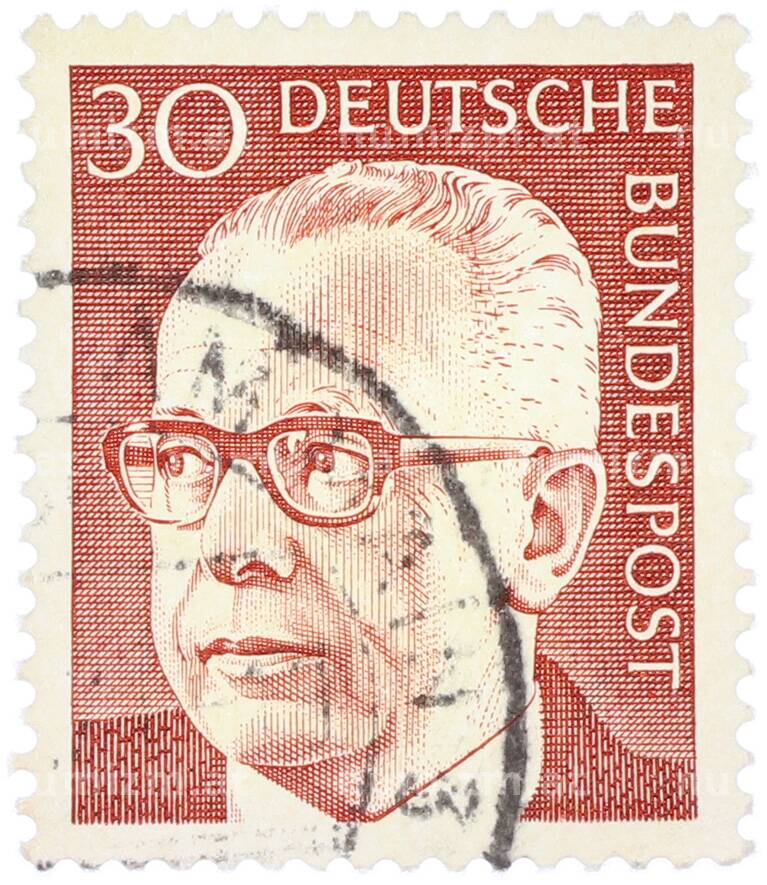 Почтовая марка 30 пфеннигов 1971 года Западная Германия (ФРГ) «Президент Густав Хайнеман» [Артикул: T11-37941]