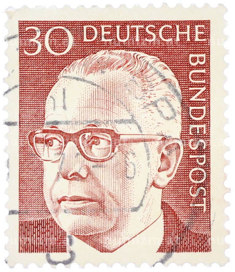 Почтовая марка 30 пфеннигов 1971 года Западная Германия (ФРГ) «Президент Густав Хайнеман» (Артикул: T11-37943): подробные характеристики, качественные фотографии в высоком разрешении, низкая цена.