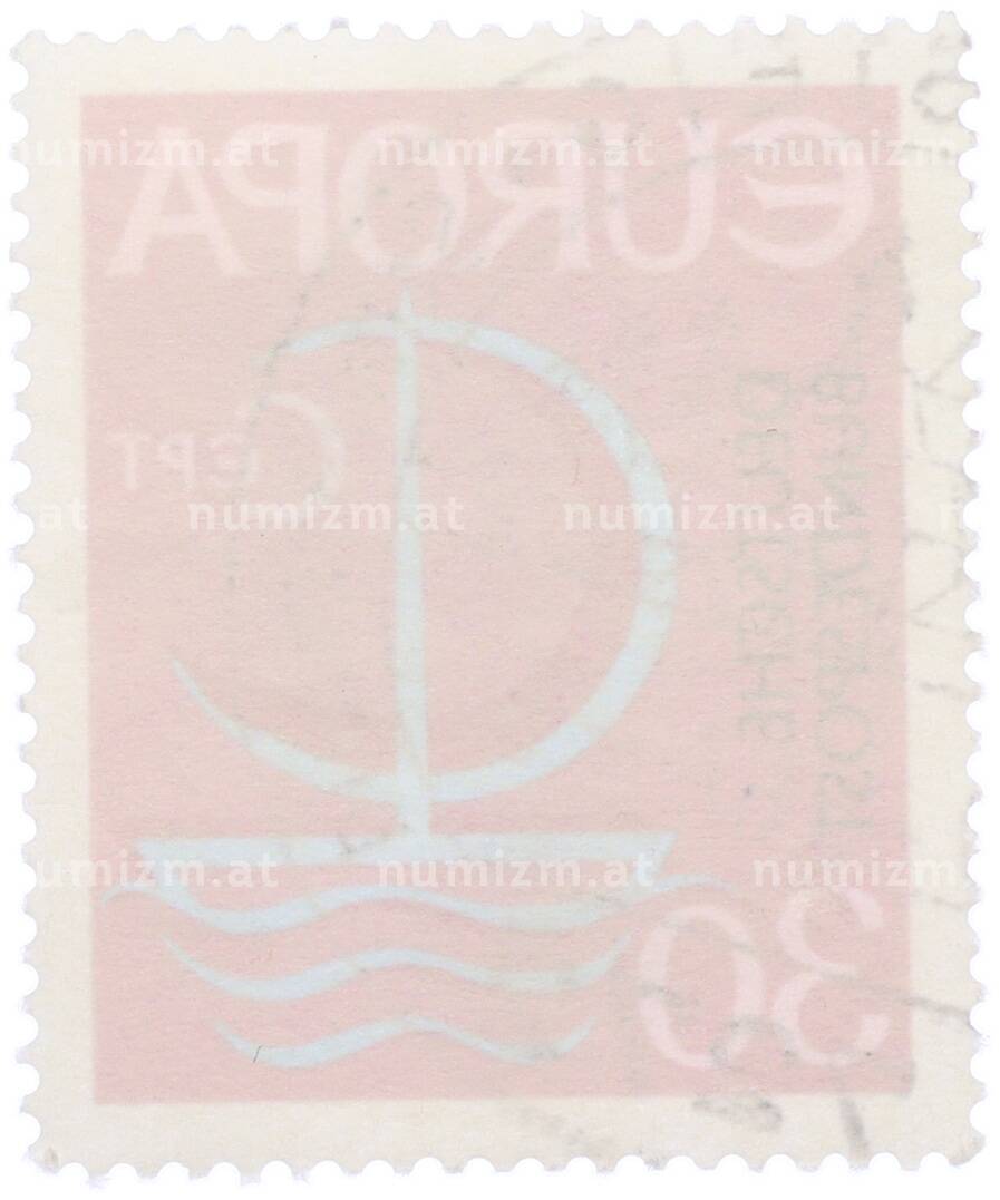 20.01.2025Интернет магазин «Нумизмат» предлагает приобрести Почтовая марка 30 пфеннигов 1966 года Западная Германия (ФРГ) «Европейская конференция администраций почтовых служб и служб связи CEPT — Парусник».