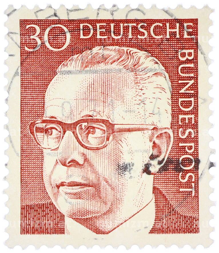 Почтовая марка 30 пфеннигов 1971 года Западная Германия (ФРГ) «Президент Густав Хайнеман» [Артикул: T11-38005]