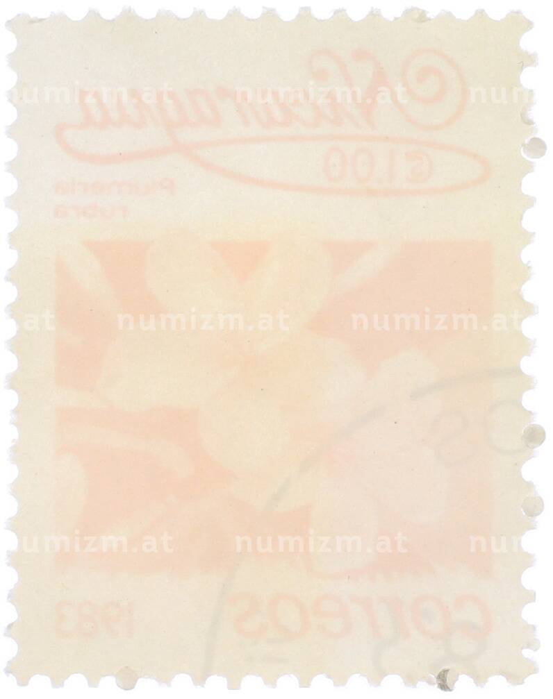 Интернет магазин «Нумизмат» предлагает приобрести Почтовая марка 1 кордоба 1983 года Никарагуа «Плюмерия красная».