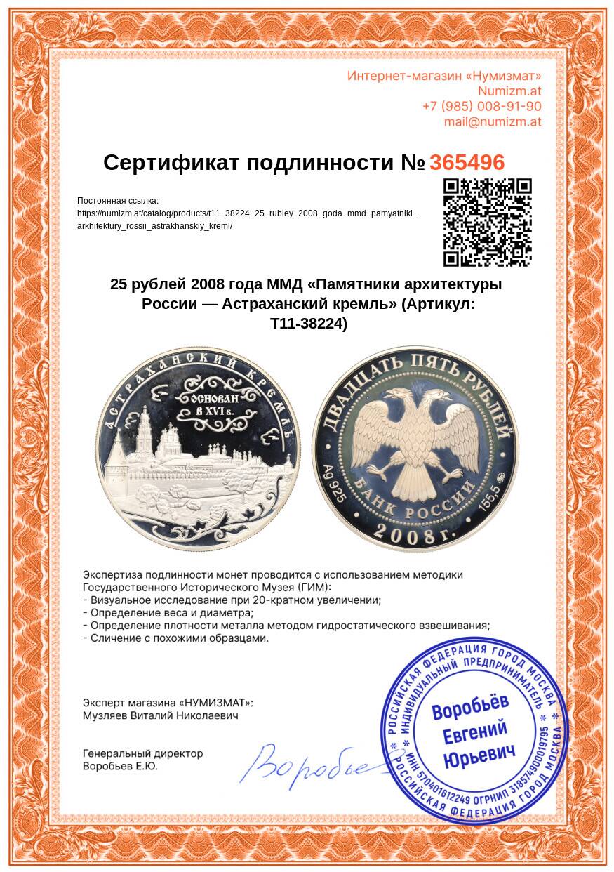 20.01.2025Интернет магазин «Нумизмат» предлагает приобрести 25 рублей 2008 года ММД «Памятники архитектуры России — Астраханский кремль».