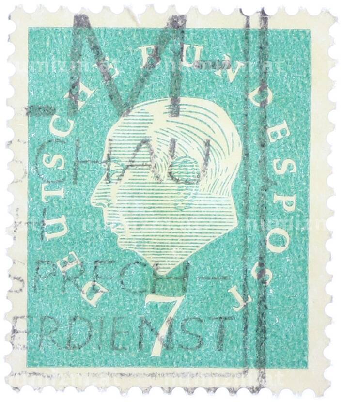 Почтовая марка 7 пфеннигов 1959 года Западная Германия (ФРГ) «Теодор Хойс» (Артикул: T11-38285): подробные характеристики, качественные фотографии в высоком разрешении, низкая цена.