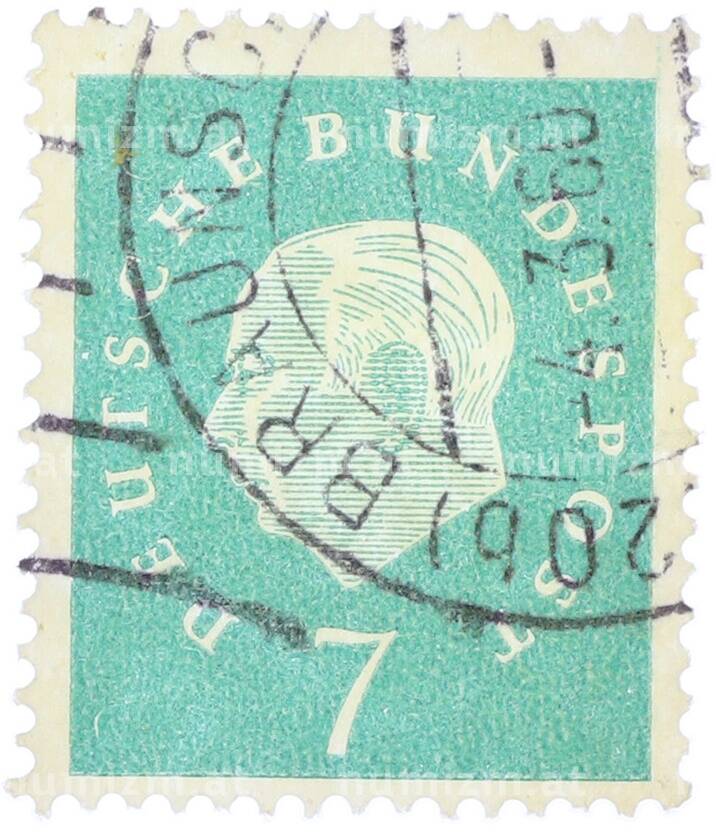 Почтовая марка 7 пфеннигов 1959 года Западная Германия (ФРГ) «Теодор Хойс» (Артикул: T11-38295): подробные характеристики, качественные фотографии в высоком разрешении, низкая цена.
