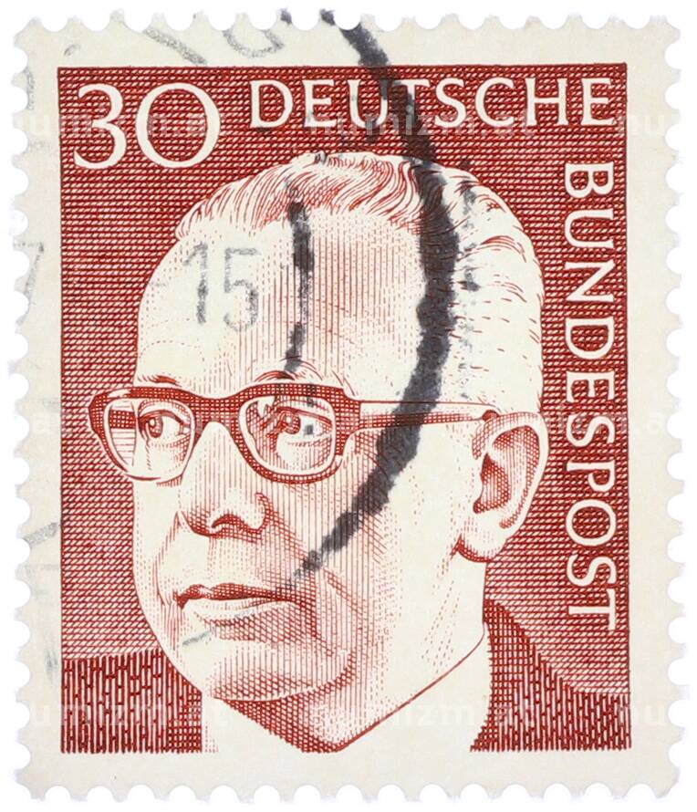 Интернет магазин «Нумизмат» предлагает приобрести Почтовая марка 30 пфеннигов 1971 года Западная Германия (ФРГ) «Президент Густав Хайнеман».