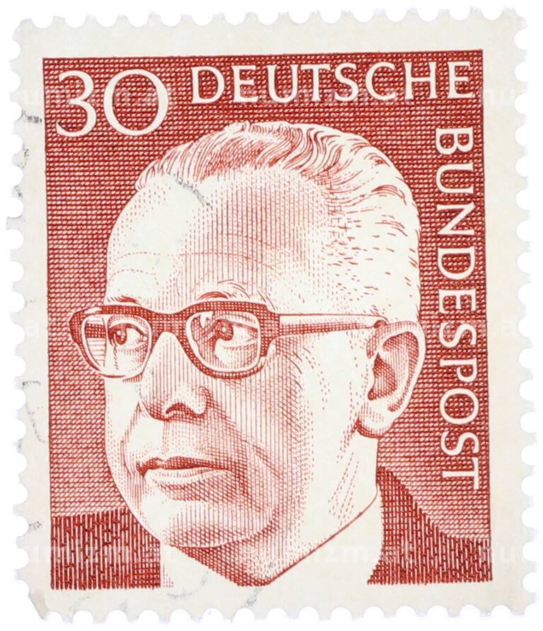 Почтовая марка 30 пфеннигов 1971 года Западная Германия (ФРГ) «Президент Густав Хайнеман» [Артикул: T11-38307]
