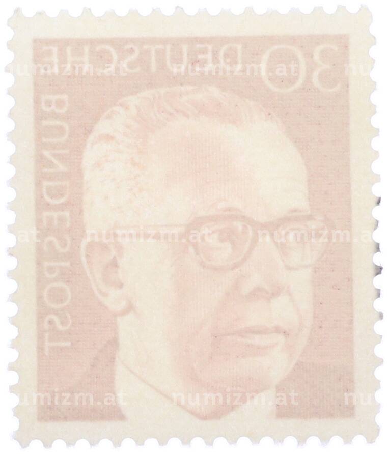 Интернет магазин «Нумизмат» предлагает приобрести Почтовая марка 30 пфеннигов 1971 года Западная Германия (ФРГ) «Президент Густав Хайнеман».