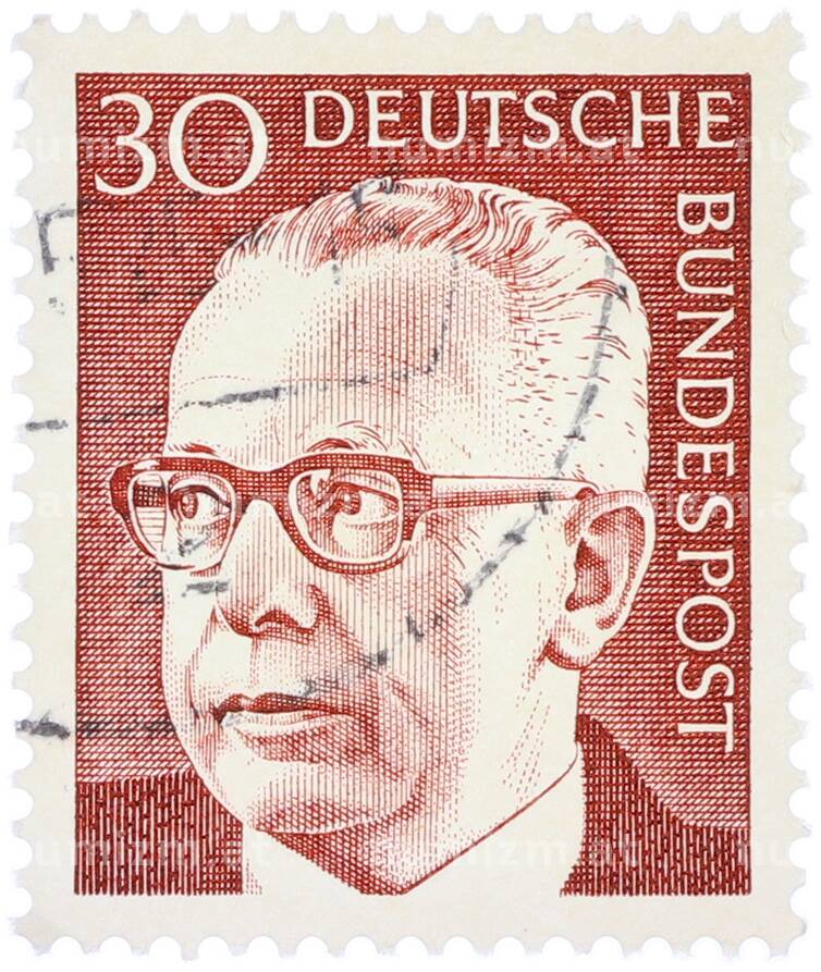 Почтовая марка 30 пфеннигов 1971 года Западная Германия (ФРГ) «Президент Густав Хайнеман» (Артикул: T11-38330): подробные характеристики, качественные фотографии в высоком разрешении, низкая цена.