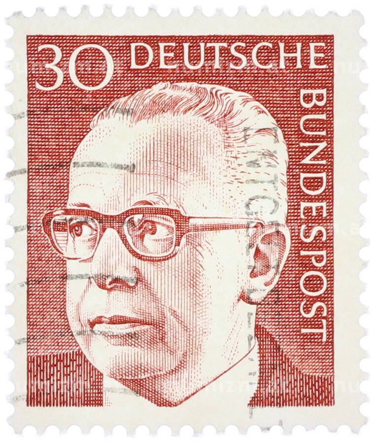 Почтовая марка 30 пфеннигов 1971 года Западная Германия (ФРГ) «Президент Густав Хайнеман» [Артикул: T11-38333]