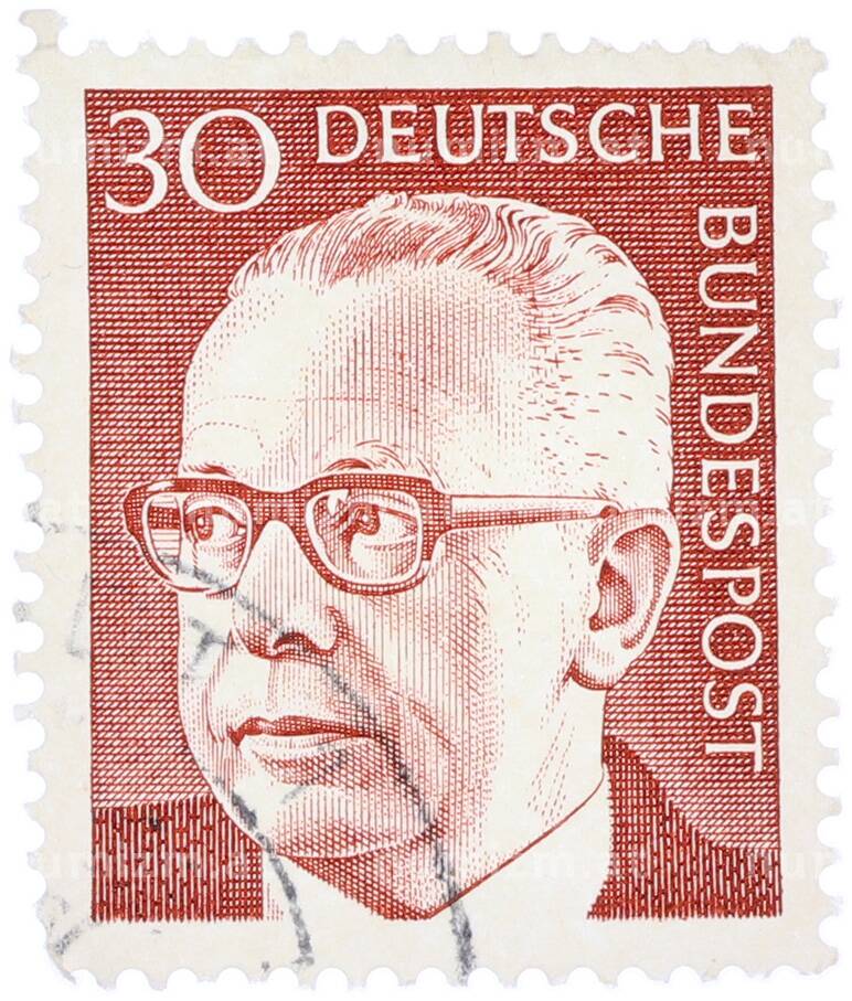 Почтовая марка 30 пфеннигов 1971 года Западная Германия (ФРГ) «Президент Густав Хайнеман» [Артикул: T11-38337]