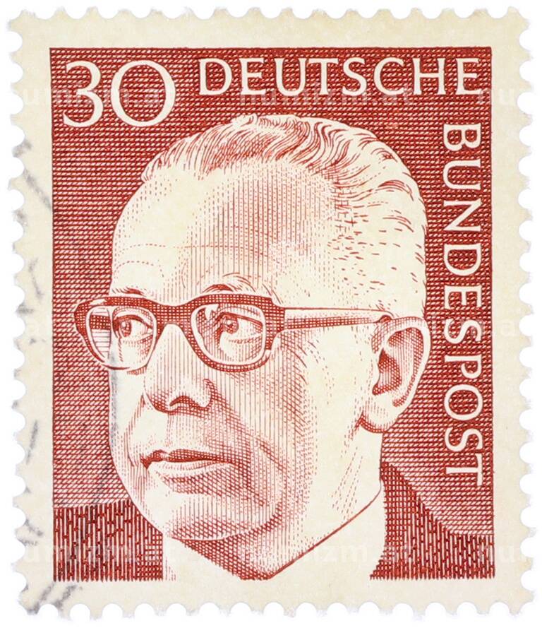 Почтовая марка 30 пфеннигов 1971 года Западная Германия (ФРГ) «Президент Густав Хайнеман» (Артикул: T11-38338): подробные характеристики, качественные фотографии в высоком разрешении, низкая цена.
