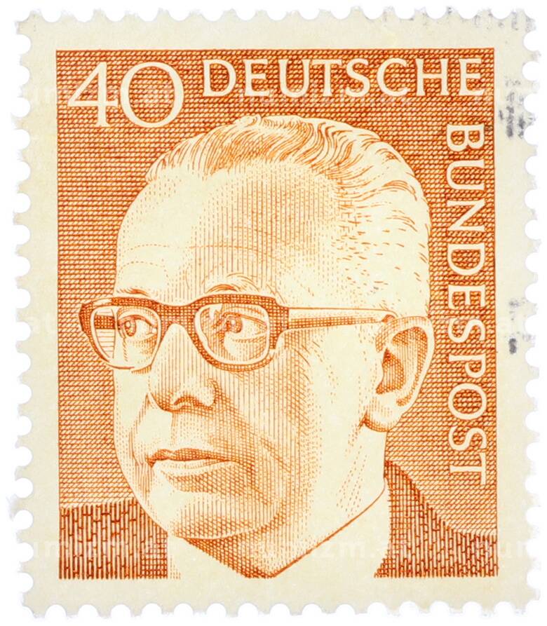 Почтовая марка 40 пфеннигов 1971 года Западная Германия (ФРГ) «Президент Густав Хайнеман» (Артикул: T11-38347): подробные характеристики, качественные фотографии в высоком разрешении, низкая цена.