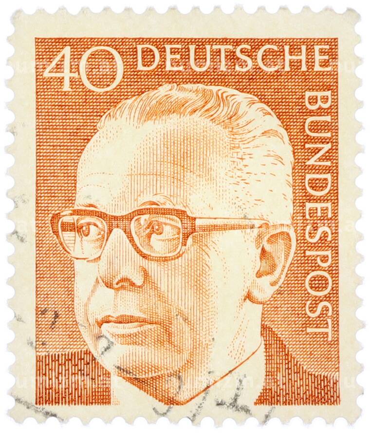Почтовая марка 40 пфеннигов 1971 года Западная Германия (ФРГ) «Президент Густав Хайнеман» (Артикул: T11-38350): подробные характеристики, качественные фотографии в высоком разрешении, низкая цена.