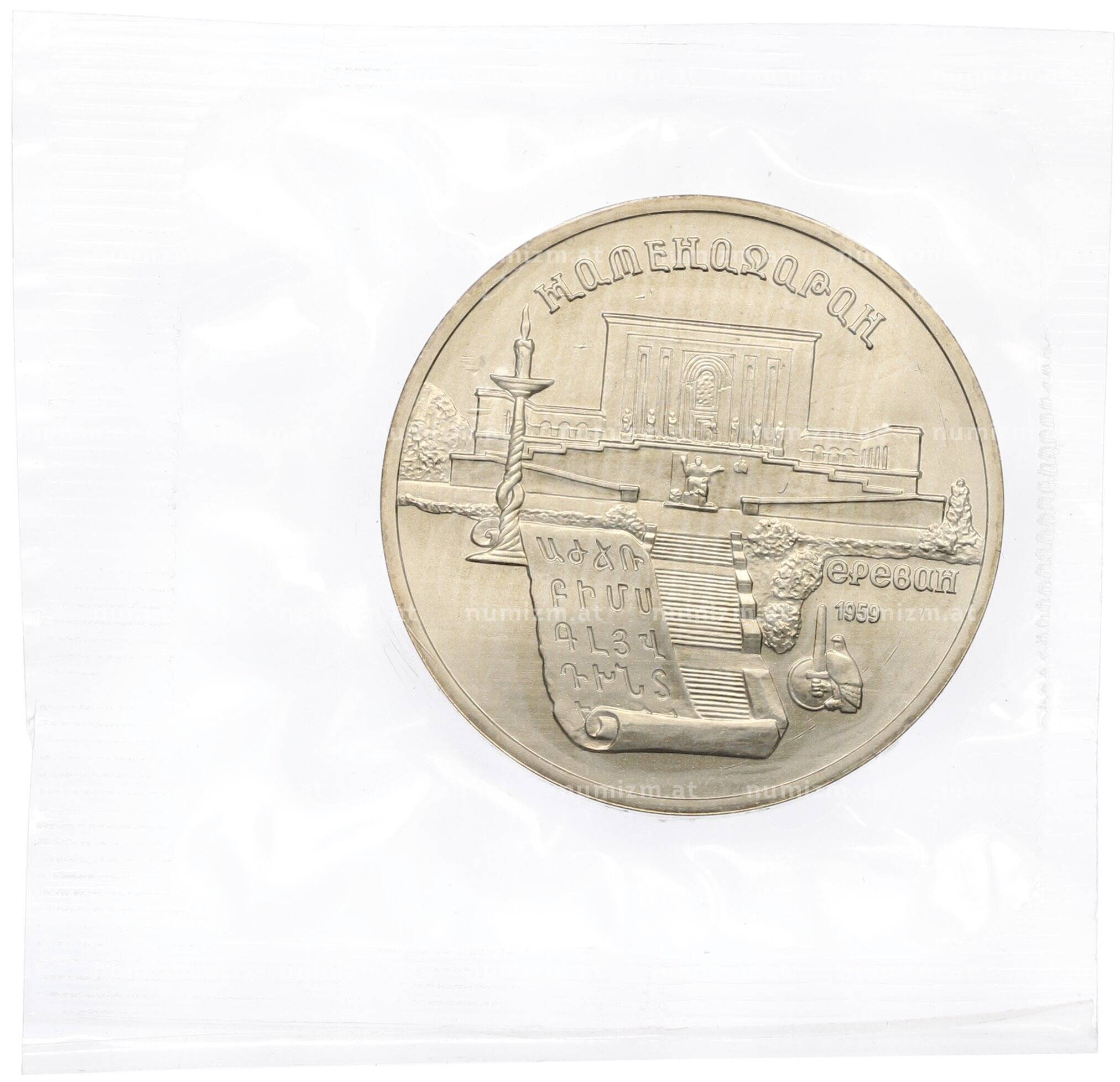 20.01.2025Интернет магазин «Нумизмат» предлагает приобрести 5 рублей 1990 года «Матенадаран в Ереване» (UNC).