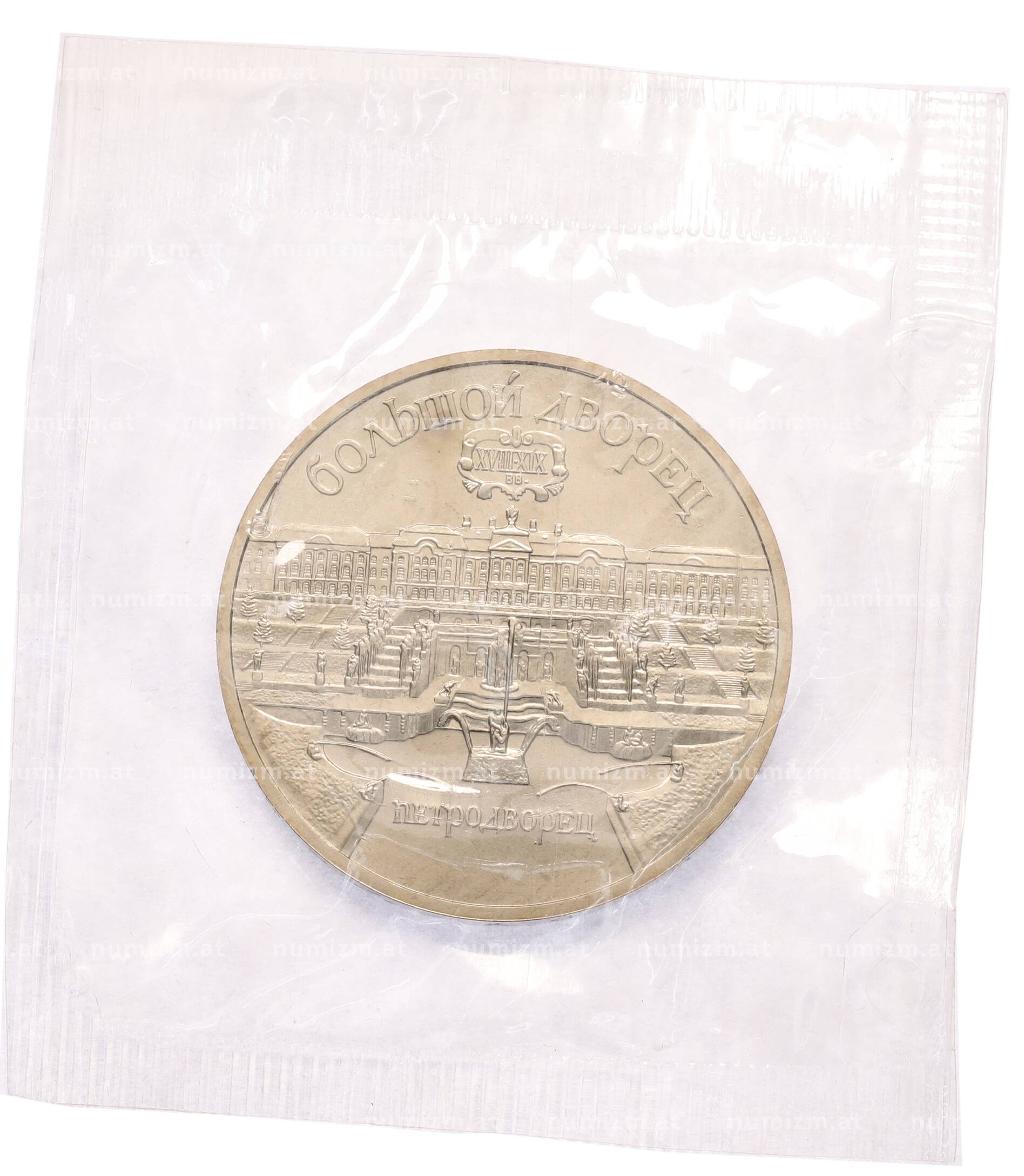 Купить 5 рублей 1990 года «Большой дворец (Петродворец)» по привлекательной цене можно в нашем интернет-магазине — Вам достаточно оформить заказ на сайте. Все монеты, представленные в каталоге, находятся в наличии на нашем складе.