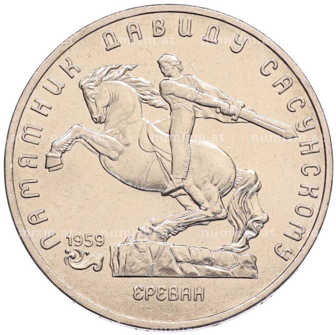 Интернет магазин «Нумизмат» предлагает приобрести 5 рублей 1991 года «Памятник Давиду Сасунскому в Ереване».
