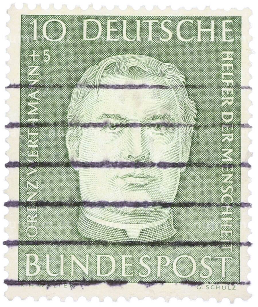 Почтовая марка 10+5 пфеннигов 1954 года Западная Германия (ФРГ) «Помощники человечества — Лоренц Вертманн» (Артикул: T11-38590): подробные характеристики, качественные фотографии в высоком разрешении, низкая цена.