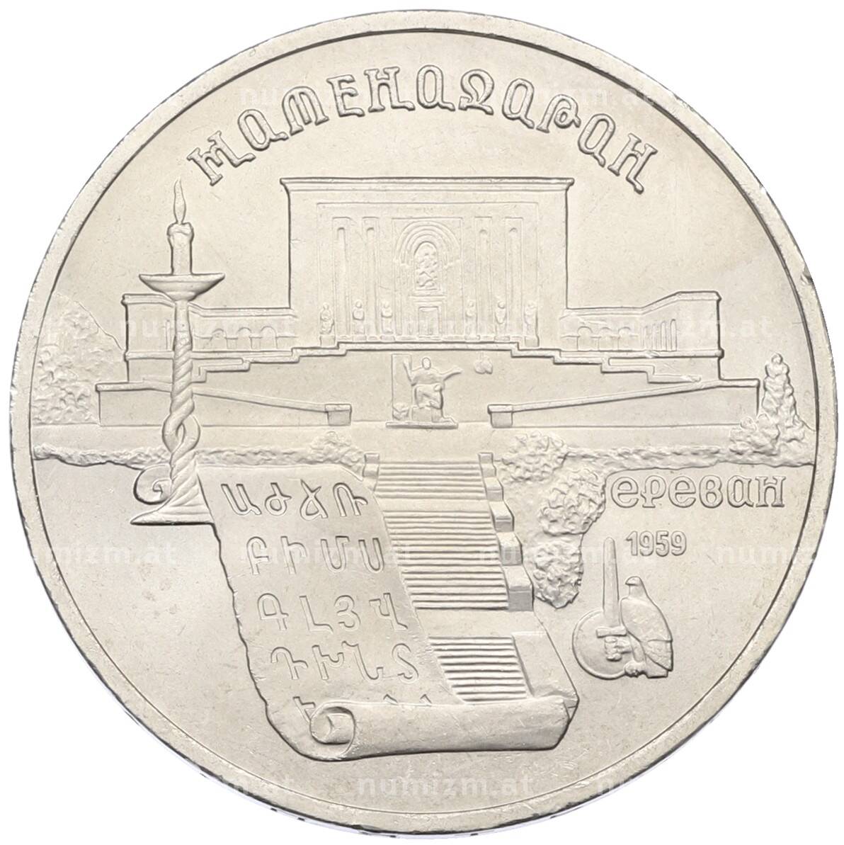 Интернет магазин «Нумизмат» предлагает приобрести 5 рублей 1990 года «Матенадаран в Ереване».