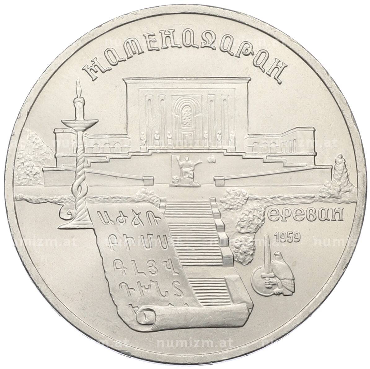 Интернет магазин «Нумизмат» предлагает приобрести 5 рублей 1990 года «Матенадаран в Ереване».