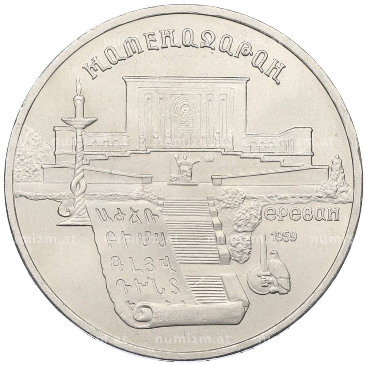 Интернет магазин «Нумизмат» предлагает приобрести 5 рублей 1990 года «Матенадаран в Ереване».