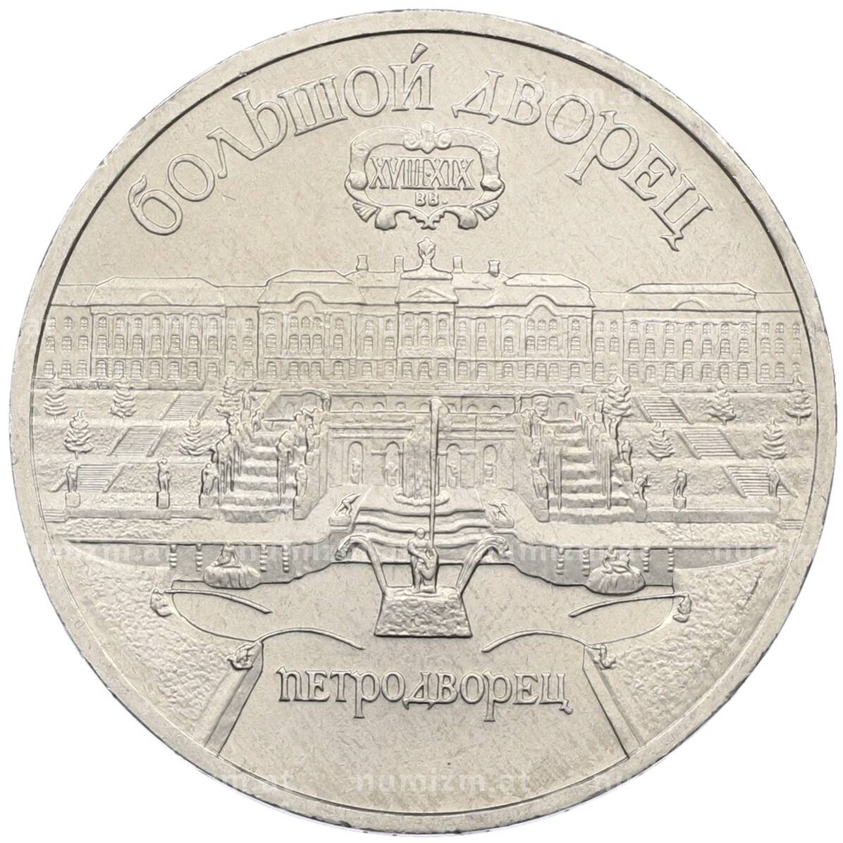 Купить 5 рублей 1990 года «Большой дворец (Петродворец)» по привлекательной цене можно в нашем интернет-магазине — Вам достаточно оформить заказ на сайте. Все монеты, представленные в каталоге, находятся в наличии на нашем складе.