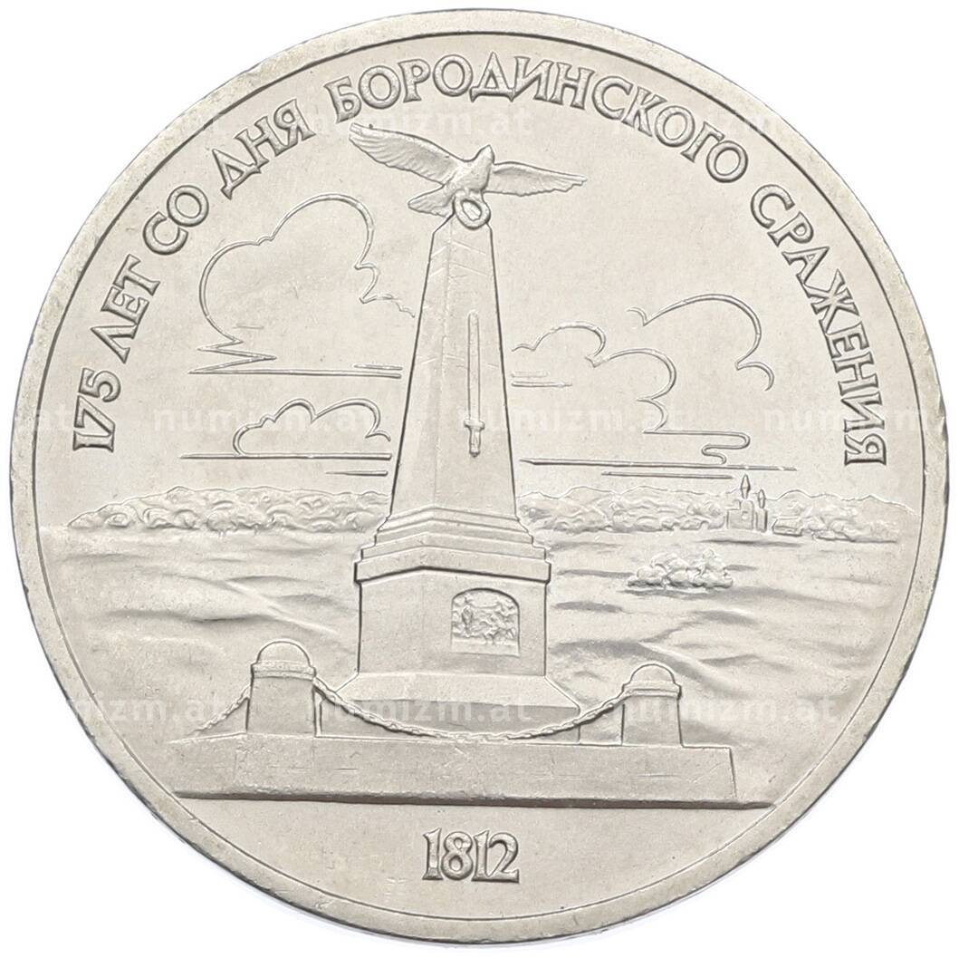 Купить 1 рубль 1987 года «175 лет со дня Бородинского cражения — Обелиск» по привлекательной цене можно в нашем интернет-магазине — Вам достаточно оформить заказ на сайте. Все монеты, представленные в каталоге, находятся в наличии на нашем складе.