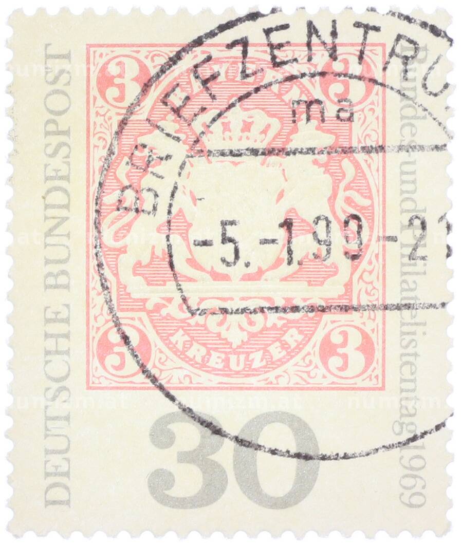 Интернет магазин «Нумизмат» предлагает приобрести Почтовая марка 30 пфеннигов 1969 года Западная Германия (ФРГ) «Баварская марка — 3 кроны».
