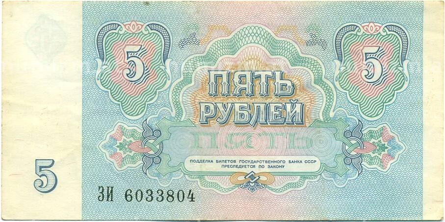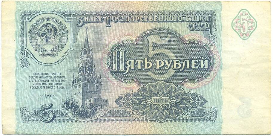 Банкнота 5 рублей 1991 года (Артикул: T11-39267): подробные характеристики, качественные фотографии в высоком разрешении, низкая цена.