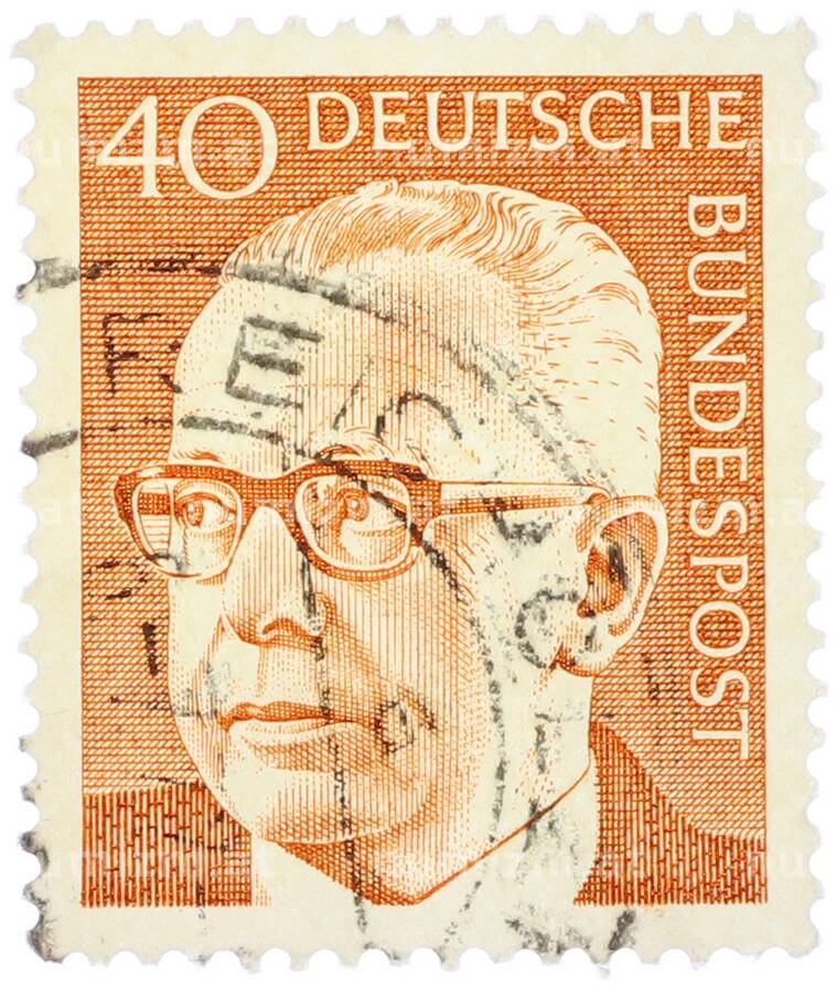 Почтовая марка 40 пфеннигов 1971 года Западная Германия (ФРГ) «Президент Густав Хайнеман» (Артикул: T11-39437): подробные характеристики, качественные фотографии в высоком разрешении, низкая цена.