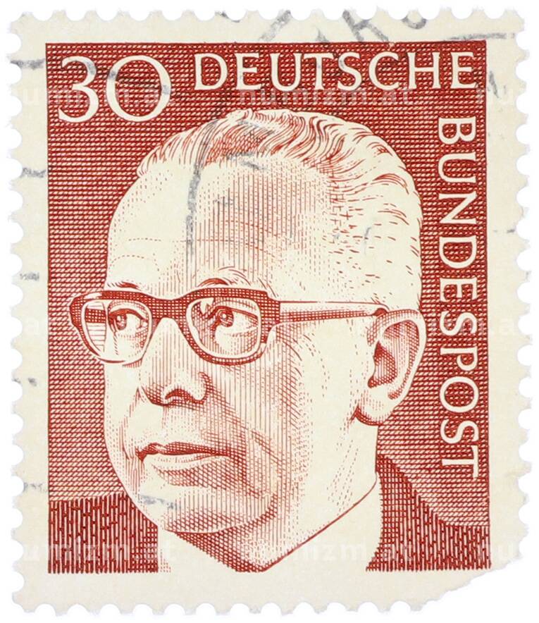 Интернет магазин «Нумизмат» предлагает приобрести Почтовая марка 30 пфеннигов 1971 года Западная Германия (ФРГ) «Президент Густав Хайнеман».
